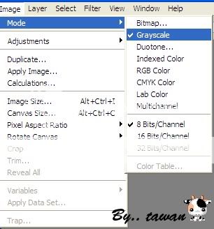 8.ไปที่เมนู Mage > Mode > Grayscale