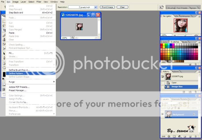 3. ไปที่เมนู เลือก Edit > Define Pattern ตั้งชื่ออะไรก็ได้ ( ตัวอย่างตั้ง 01 ) กด OK. แล้วปิดภาพนี้ไปเลยไม่ใช้แล้วจ่ะ