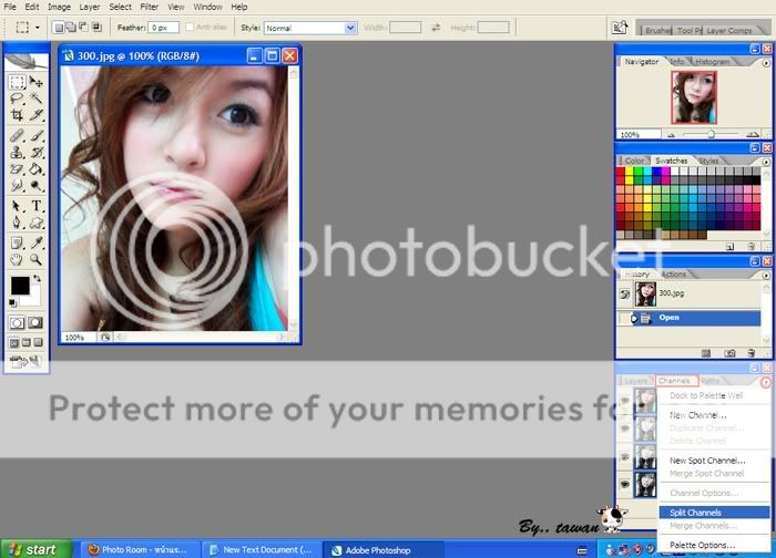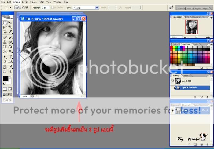 5. จากนั้น ไปที่พาเลท Channel คลิกปุ่มลูกษร ที่มาร์คสีแดงๆ เอาไว้ เลือก Split Channels