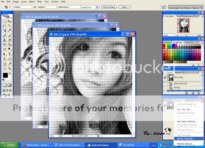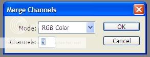 10. ไปที่พาเลท Channels คลิกปุ่มลูกศร เลือกที่ Merge Channels ( ตรงChannels:คือ 3 กด OK.)