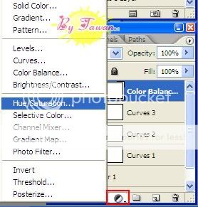 - คลิกปุ่ม หยินหยาง เลือก Hue/Saturation.. เลื่อนปุ่มปรับตามชอบเลยจร่ะ (เอาให้เหมือนเลยนะทีนี้..)