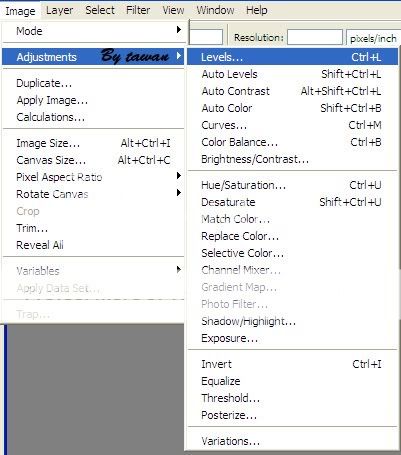 10. เสร็จแล้วไปที่เมนู Image >> Adjustments >> Levels.. กำหนดค่าตามความสวยงาม..