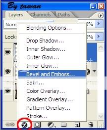 9. คลิกที่ปุ่ม Add a Layer Style เลือก Bevel and Emboss.. กำหนดค่าตามภาพ..
