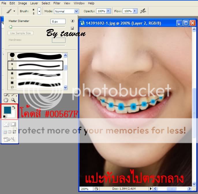 - ใช้เครื่องมือ Zoom Tool ( แว่นขยาย ) ซูมเข้าไปใกล้ๆ ฟันเพื่อง่ายต่อการทำงานนะจ๊ะ