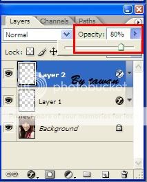 11. และ Layer 2 ปรับค่า Opacity ประมาณ 50-80% ตามความสวยงาม