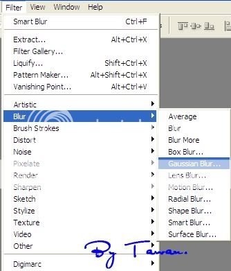4. ไปที่เมนุ Filter >> Blur >> Gaussian Blur กำหนดค่าเป็น 1.0 pixles แล้วกด OK.